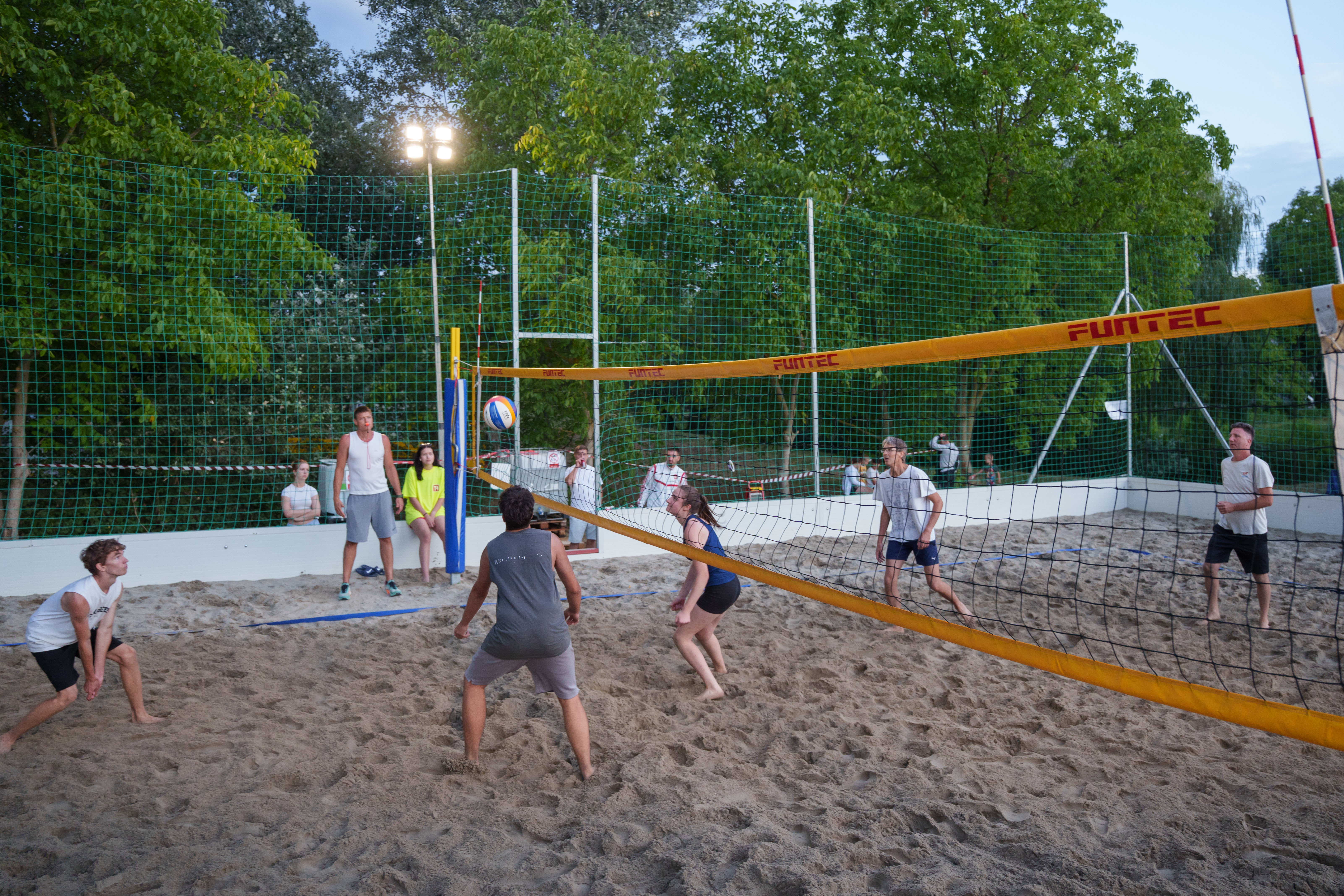 A lebonyolítás rendje idén is feszes volt: 4 négyes csoportban körmérkőzéssel dőlt el a sorrend, majd a csoportelsők a másik csoport második helyezettjeivel, a harmadikak és negyedikek pedig szintén egymással csaptak össze a továbbjutásért. Így minden csapatnak legalább négy, 25 pontig tartó mérkőzést volt lehetősége lejátszani. Az időjárás csempészett némi izgalmat a napba: zivatarok jöttek-mentek az országban, de szerencsére minket elkerültek. A pályák mellett végig szólt a zene, ami nemcsak a játékosokat, hanem a nézőket is jó hangulatba hozta. A Fagyi Faló finom fagylaltjai, a Lángosváros frissensült falatkái és a budaörsi Punto étterem hűsítő italai mind hozzájárultak ahhoz, hogy az esemény igazi nyári közösségi élménnyé váljon.