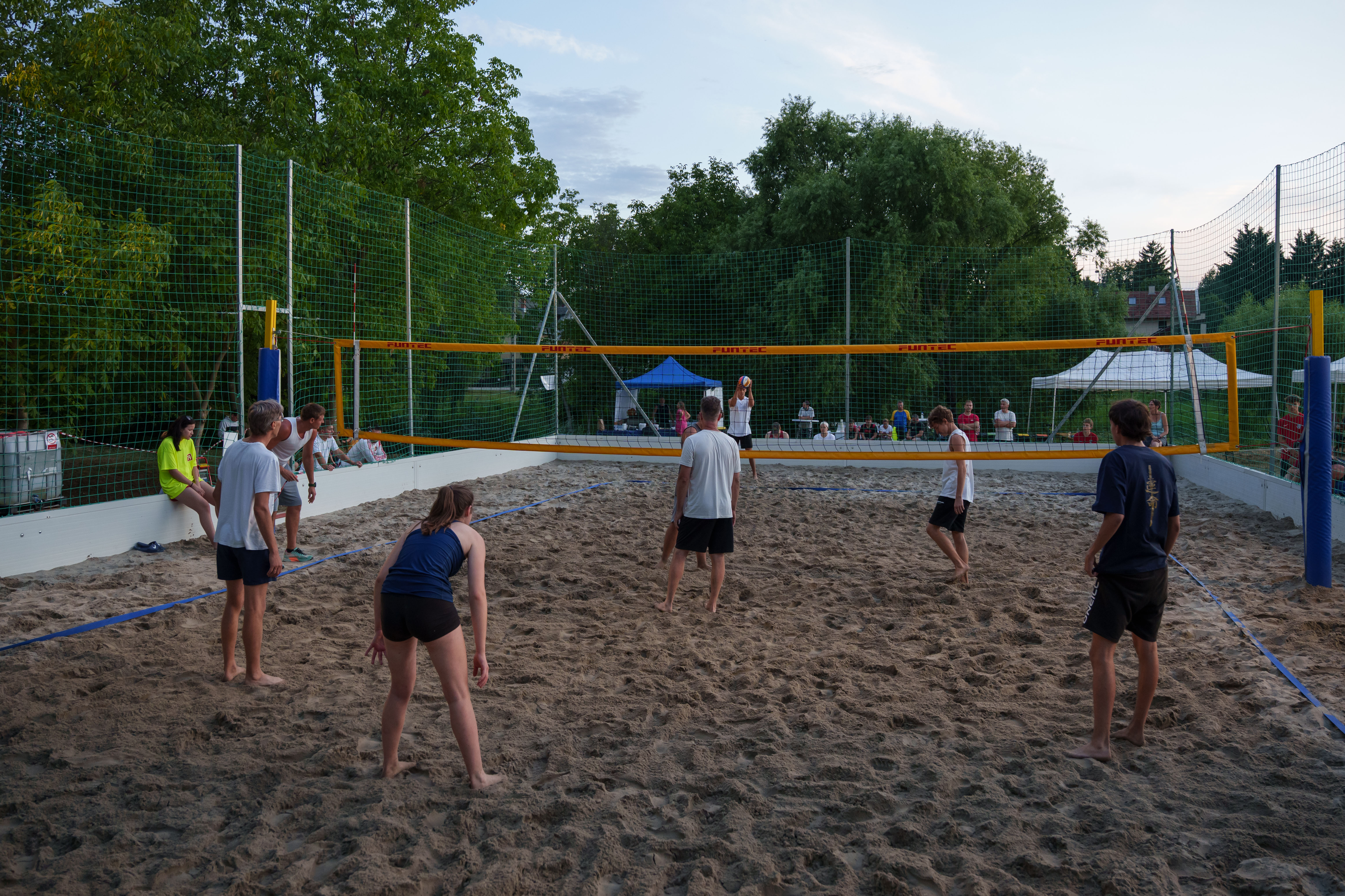 Szombaton ismét benépesült az Árpád utcai strandröplabda pálya. Második alkalommal rendeztük meg az amatőr strandröplabda bajnokságunkat, amelyre ezúttal már 16 csapat nevezett. A tavalyi sikeren felbuzdulva idén is igyekeztünk emelni a tétet, és úgy tűnik, sikerült is: délután 1 órától este 10-ig tartott a program, két pályán összesen 39 mérkőzést vívtak a résztvevők, és a bajnokság végeztével egy tábortűz mellé telepedve szalonnasütés közben lehetett megbeszélni a nap élményeit, megpihentetni a fáradt tagokat.